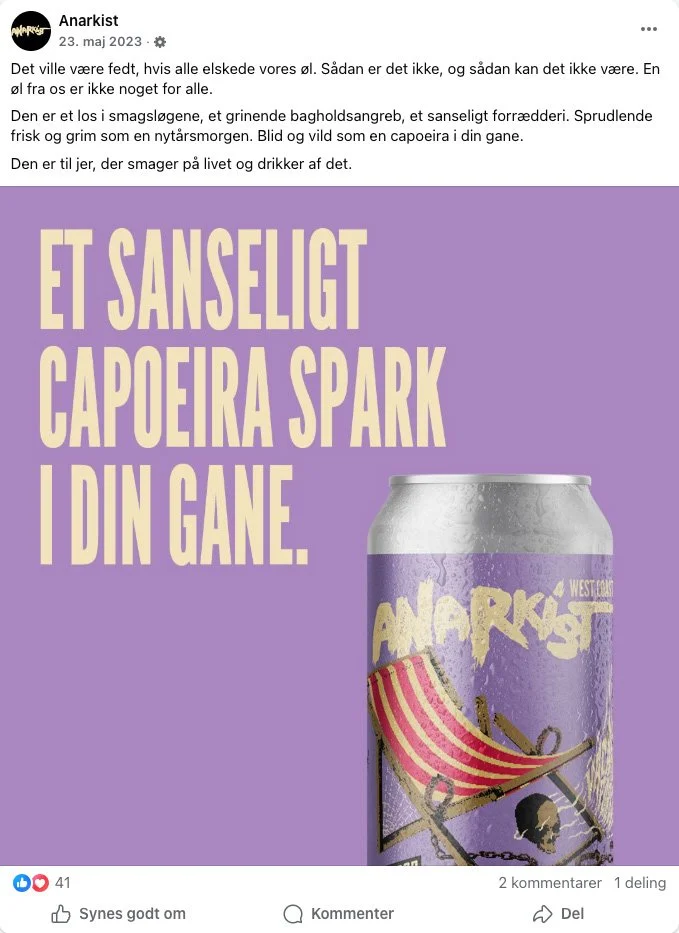 Da jeg arbejdede på Zupa udviklede vi Tone of Voice til Royal Unibrews Anarkist brand.